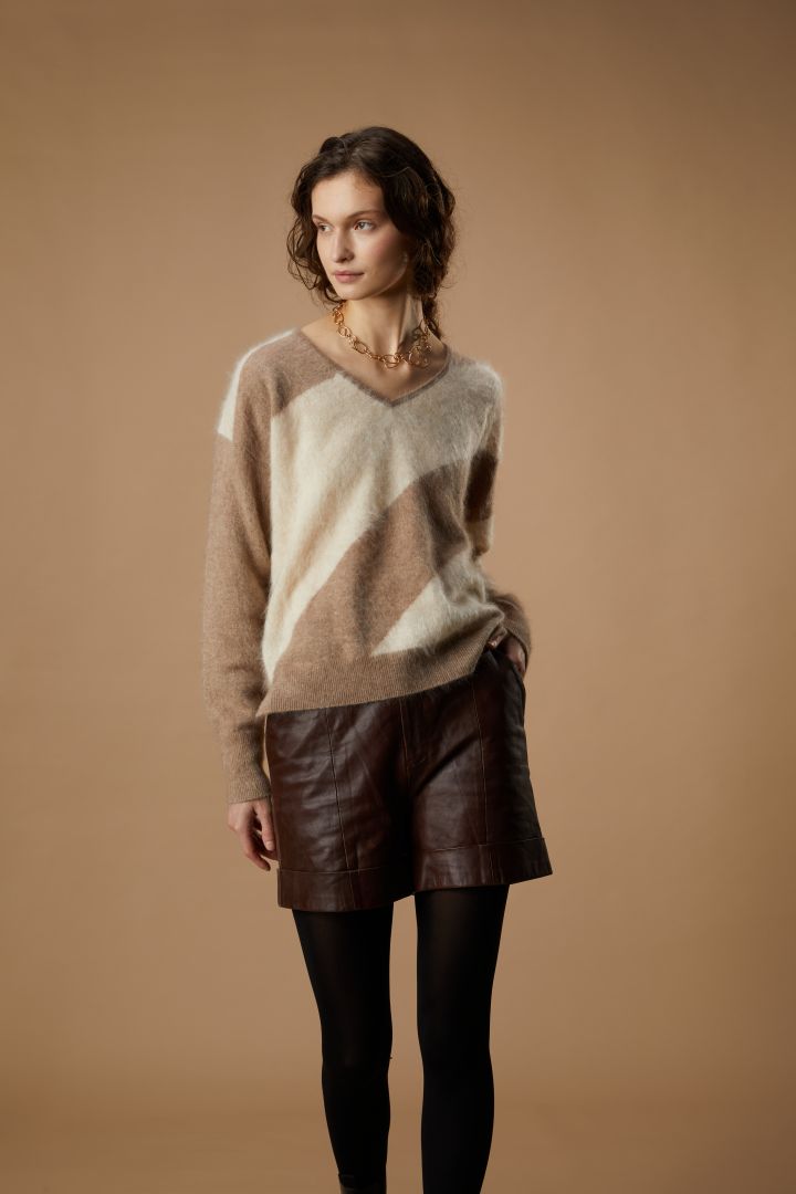 Col V bicolore avec rayures obliques