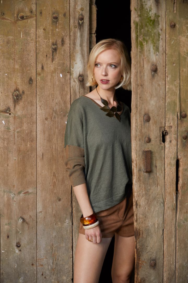 Col V manches 3/4 lurex sur manches et col