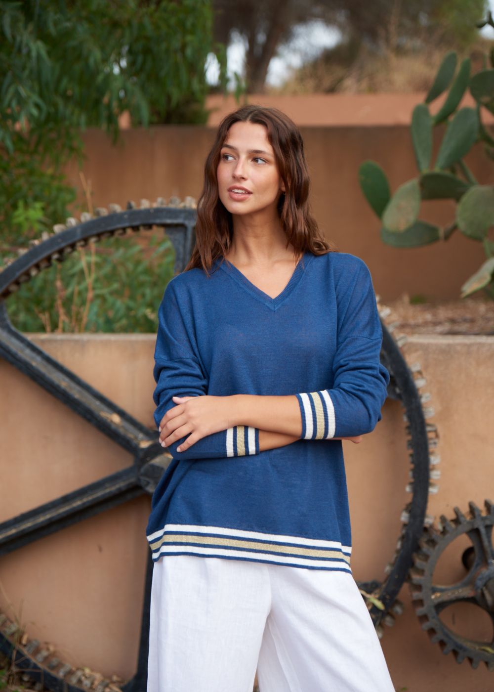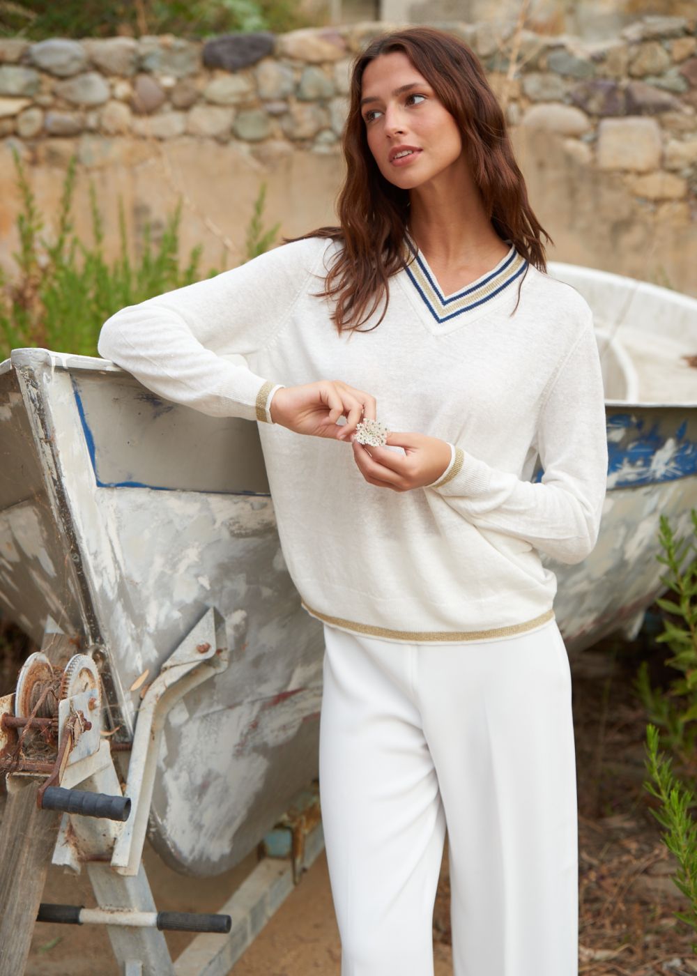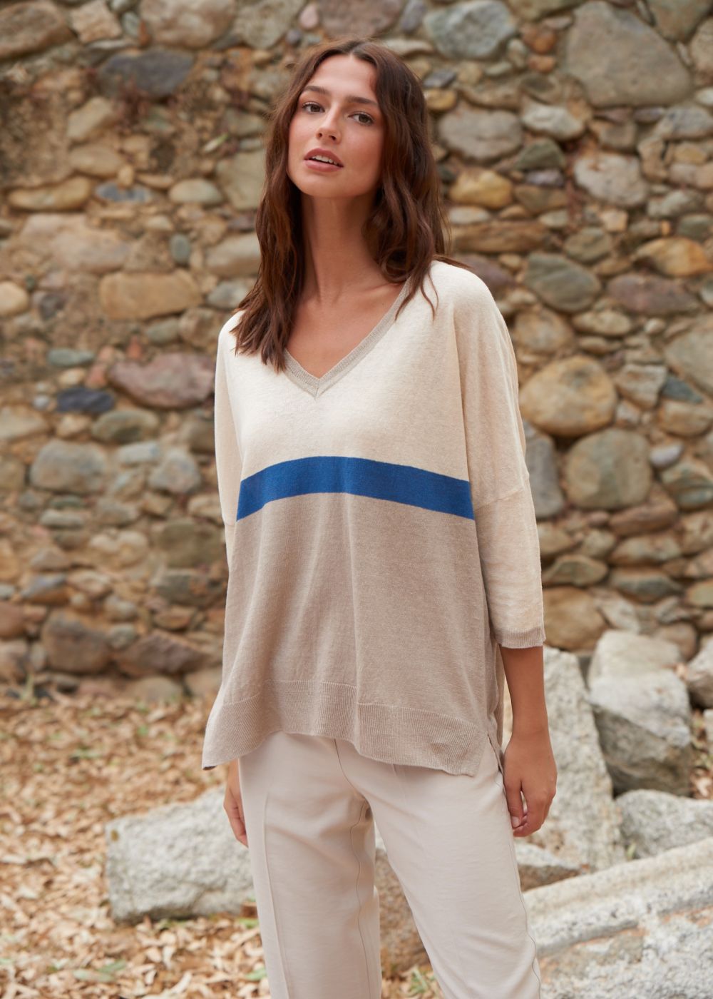 Robe 1/2 manches rayé en bas détail lurex I 100% Lin