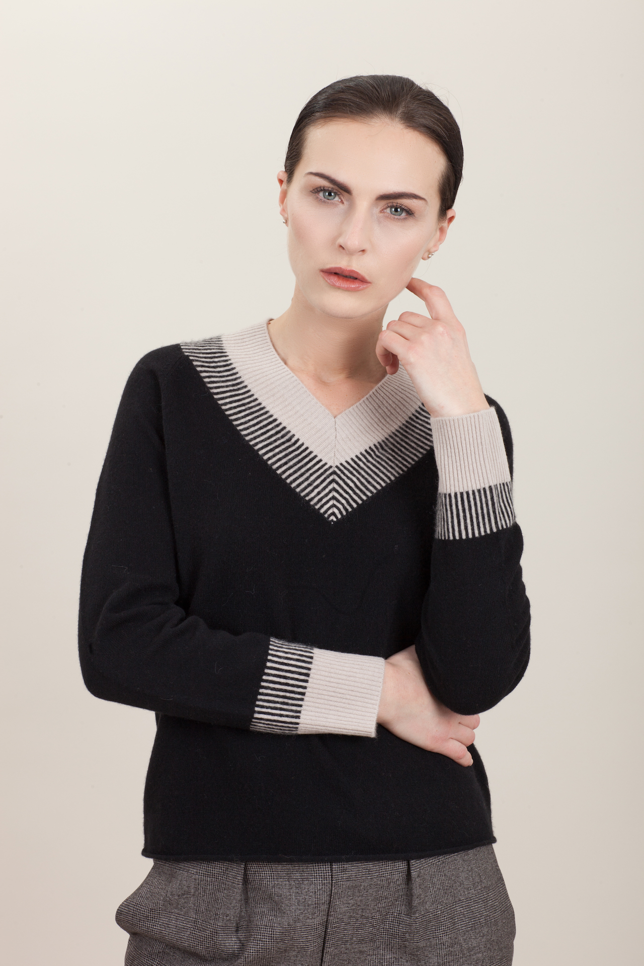 Col V tricolore pois 2 Fils I 100% Cachemire