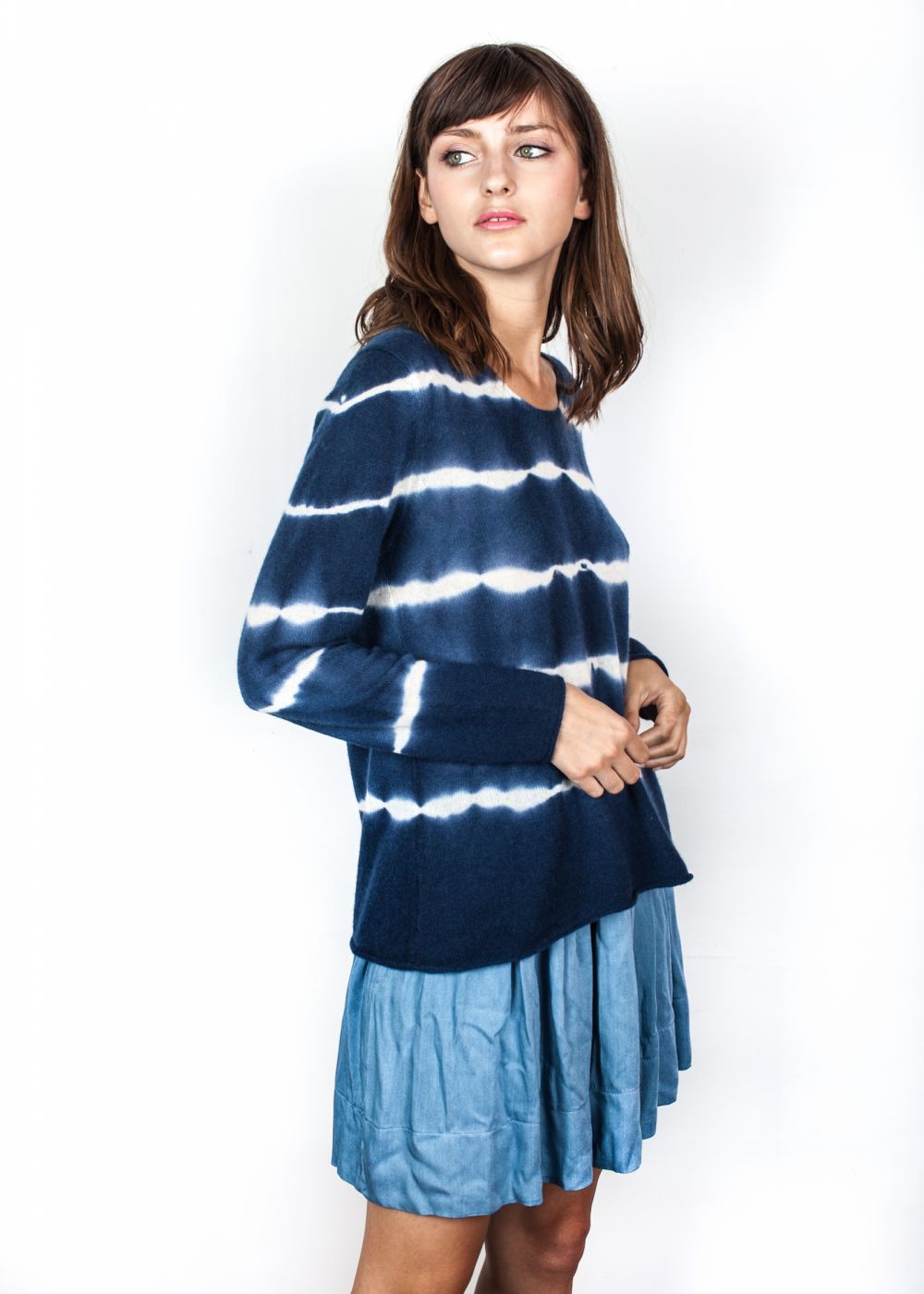 Pull tie-dye lignes rayures - 100% Cachemire à maille déjaugée