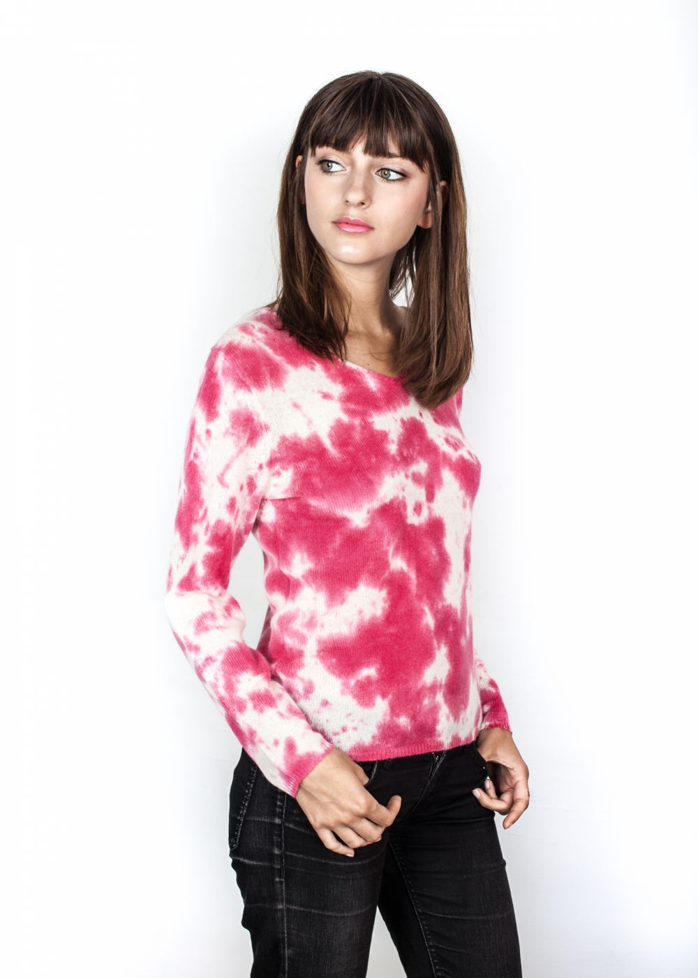 Pull col V tie-dye - 100% Cachemire à maille déjaugée