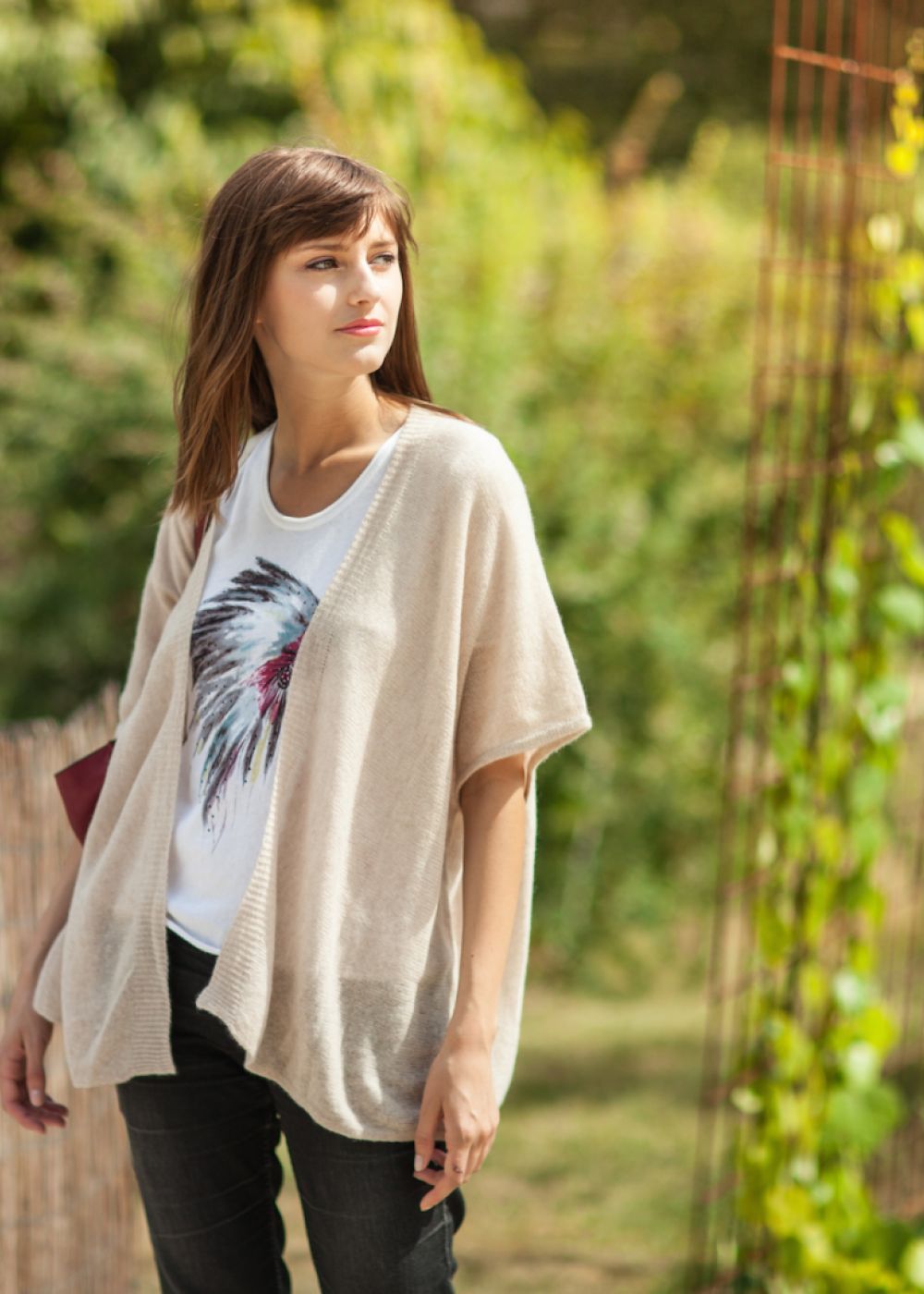 Veste ouverte manches courtes - 100% Cachemire à maille déjaugée