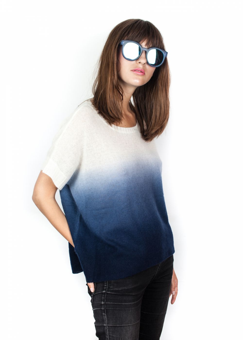 Pull ras du cou manches courtes tie & dye - 100% Cachemire à maille déjaugée