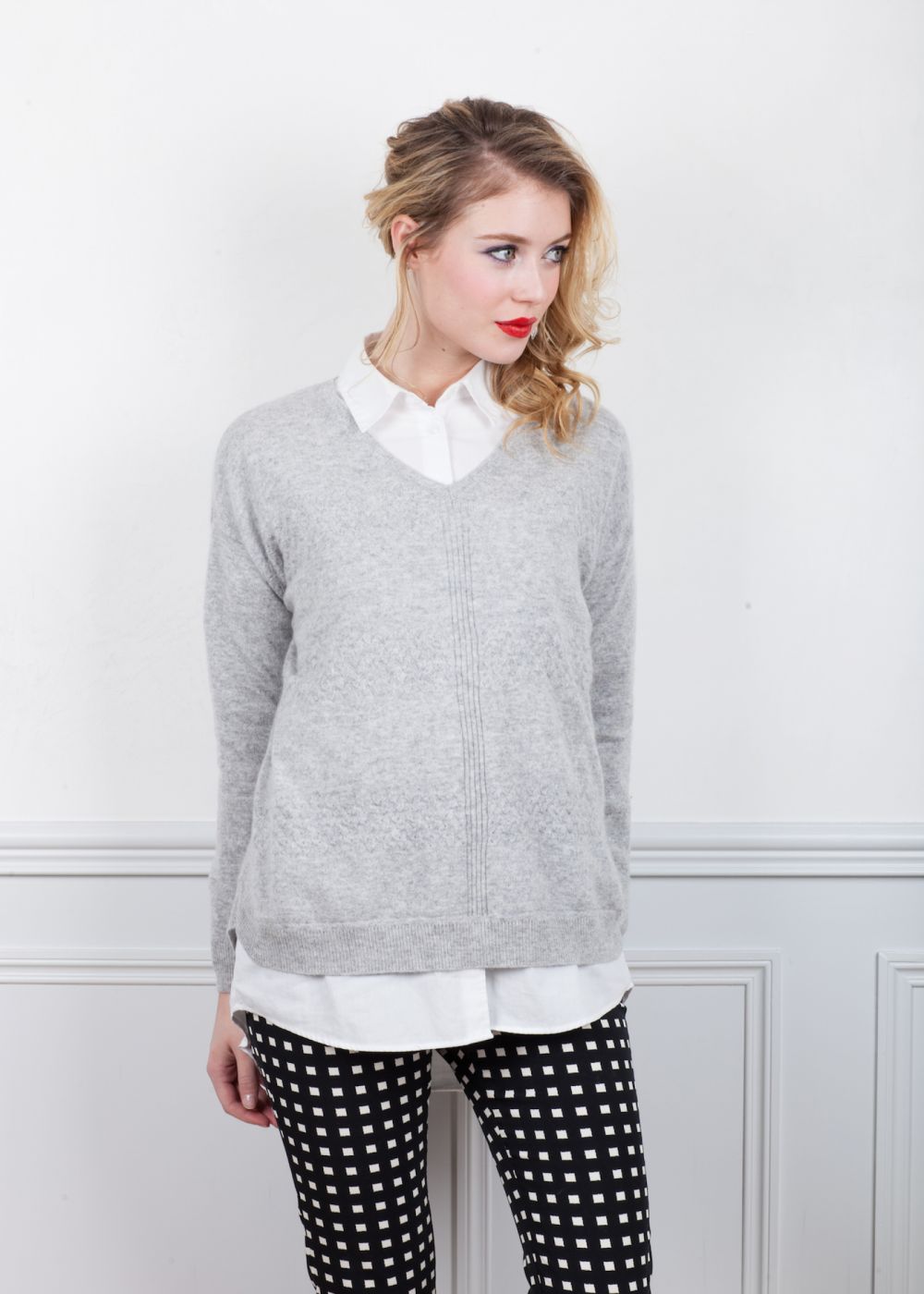 Pull col V manches trompettes, 4 Fils, 100% Cachemire