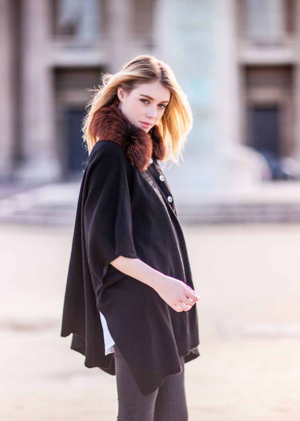 Cape épaisse fourrure sur le col, 4 Fils, 100% Cachemire