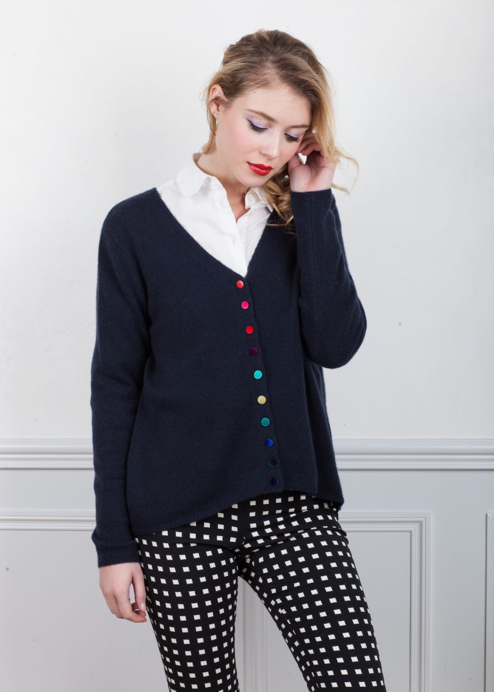 Gilet avec boutons multicolores, 2 Fils, 100% Cachemire