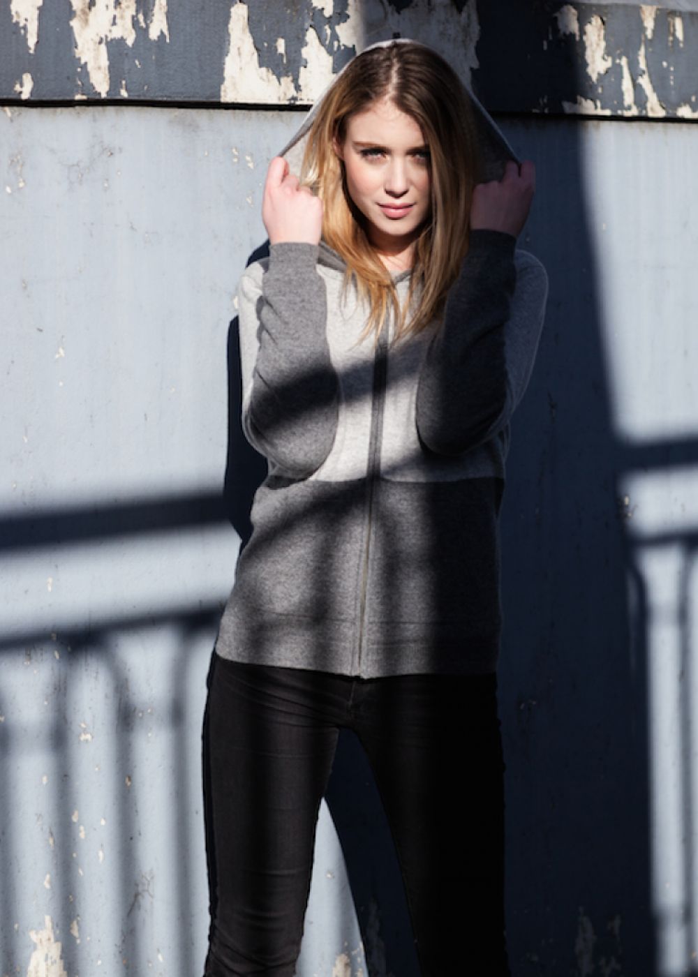 Blouson zip capuche bicolore, 2 Fils, 100% Cachemire