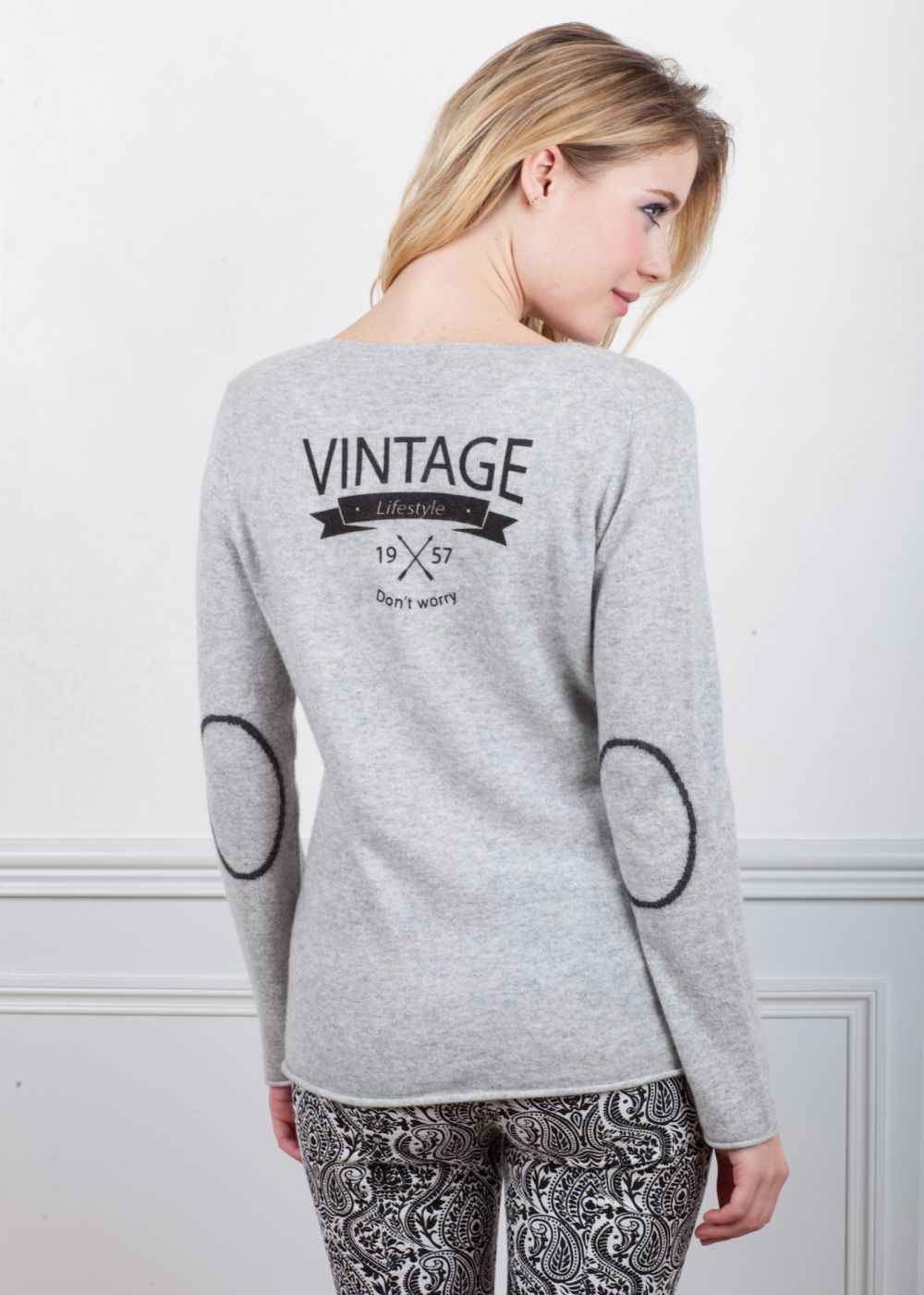 Pull col V impression Vintage, 2 Fils, 100% Cachemire
